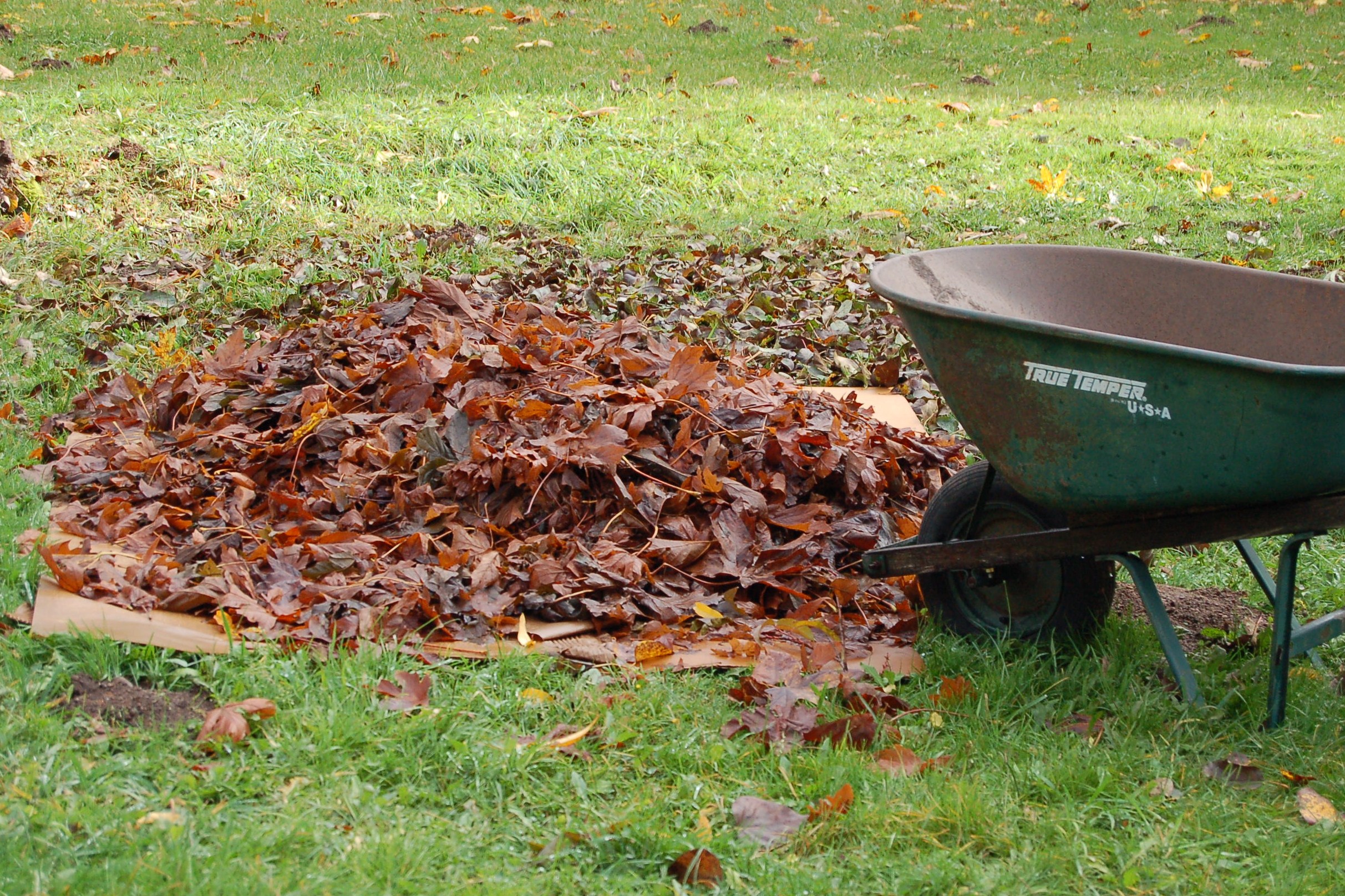 A good portion of our lot is wooded. I’m talking very big, very tall trees native to the Pacific Northwest. Most of the these trees are evergreen, not requiring much work, but we do also have native Big Leaf Maple trees. The name says it all. Big leaves. And lots and lots of them. In years past, the dropping of these leaves has been nothing but a nuisance. What to do with all those leaves?  Typically, we’ve raked them into a sloped area near our driveway and forgotten about them. This year, though, I better understand what the Big Leaf has to offer. Leaves are a great ingredient in composting. I’m a beginner at composting, so a site like Seattle Tilth will tell you all about it much more effectively than I could. Simpler than mixed ingredient compost, leaf mulch is essentially just leaves that have been piled up and have broken down. Some sites recommend that you mulch, or chop up, the leaves to help them break down faster. As you can see, I did this to cover the new rain barrels and raised beds. By the spring, once the leaves have broken down, they can be used as you would any mulch, for weed suppression and moisture retention. You can also dig them into food planting areas to build up organic matter and improve the overall quality of the soil.