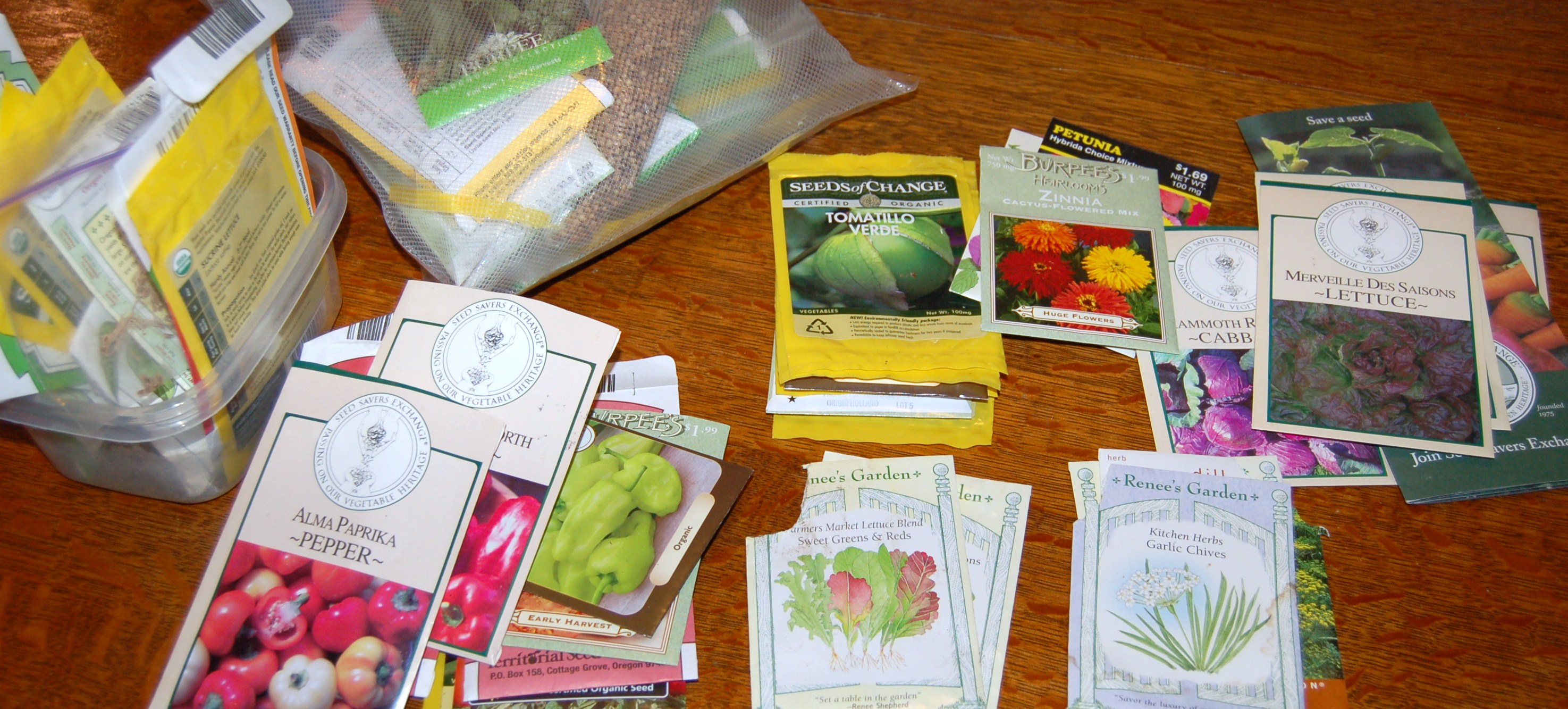 I need to follow your lead and do a reorg of my seed inventory. I have it in a couple of separate stashes – small packets and containers/current year supply, two coffee cans that has my emergency seed reserve (in case of job loss or the end of the world as we know it! LOL!), and a box that has my cover crops and big packages of beans and peas and corn etc. I tend to go through them periodically for fun so I stay on top of it fairly well, but it really does get to be a mess after a while.
