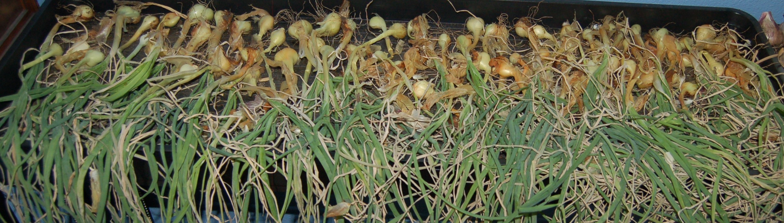 Shallots, on a drying table