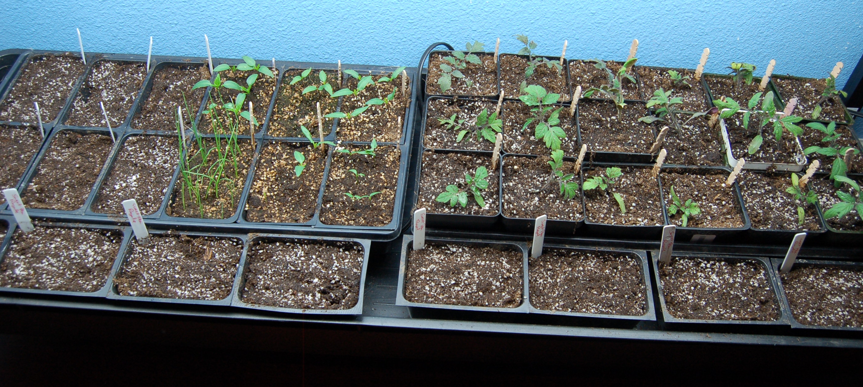 Just as the rats must die, seedlings must die as well. Seed starting invariably involves the process of thinning, which is a nice way of saying purposely killing some of the plants. When I planted my tomato seedlings, I planted them four seeds to a pot. Sometimes germination is poor and the extras are there to make sure you get at least one healthy plant (hopefully) per pot. My tomato germination this year was really strong, which means I had to thin the plants. I kept the strongest plant in each pot and pulled out the rest. I also repotted the plants to bury the stem of the strongest plant deeper, since the stems will root and help create a stronger root system for the tomato plant.