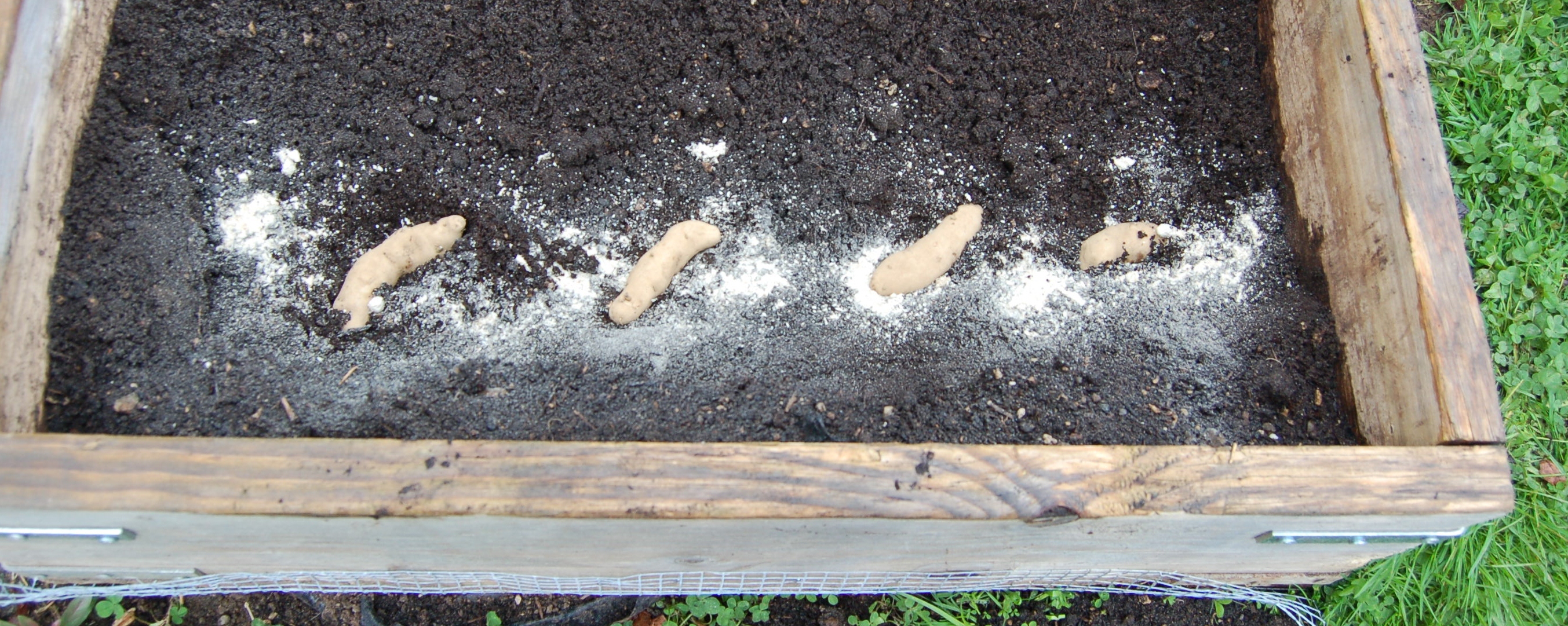 This year, I am only growing one potato variety. I’m dealing with some space constraints since we haven’t added as many new beds as I thought we might so I decided to grow just my favorite variety, La Ratte, which tends not to be easily available in stores. La Ratte is excellent for soups and salads and also tastes really good sautéed with onion. Last year, I grew potatoes in grow bags, which worked out OK, but I found the bags were a bit of a pain and decided to grow in a bed instead this year. To grow the potatoes in the bed, I’m following the method outlined by Laura at The Modern Victory Garden. Check out her useful guidance there.