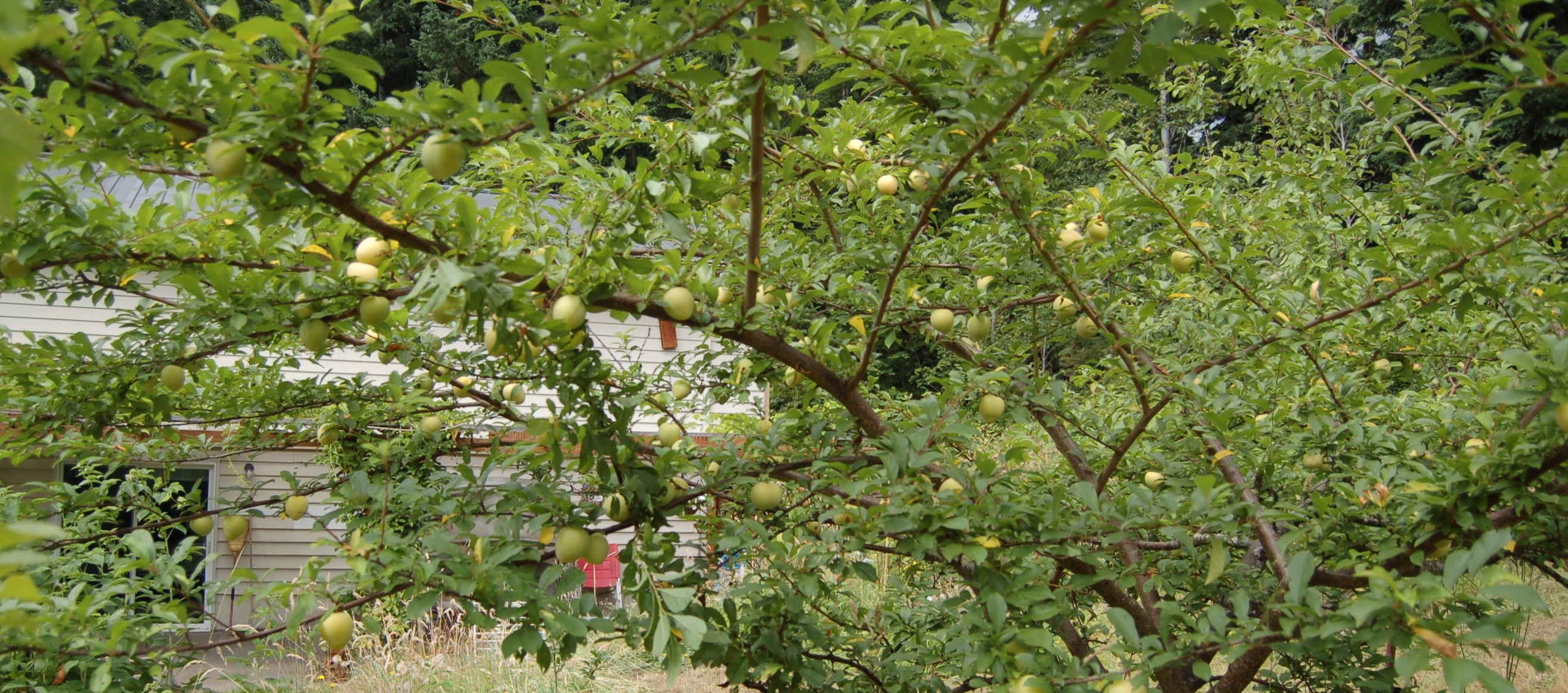One area where we can’t stake out the goats is the orchard. They’d just love to eat the delectable fruit tree leaves and I just can’t let them happen. It’s a no-goat zone for sure. In the orchard, the Shiro plum is getting close to being ripe. Compared to my plum crop last year, I have about half as many plums and they will be ripe at least two weeks later than they were last summer. The apple crops are ripening nicely, but I only have one peach on my outdoor tree (again, far less than last year) and no pears at all.