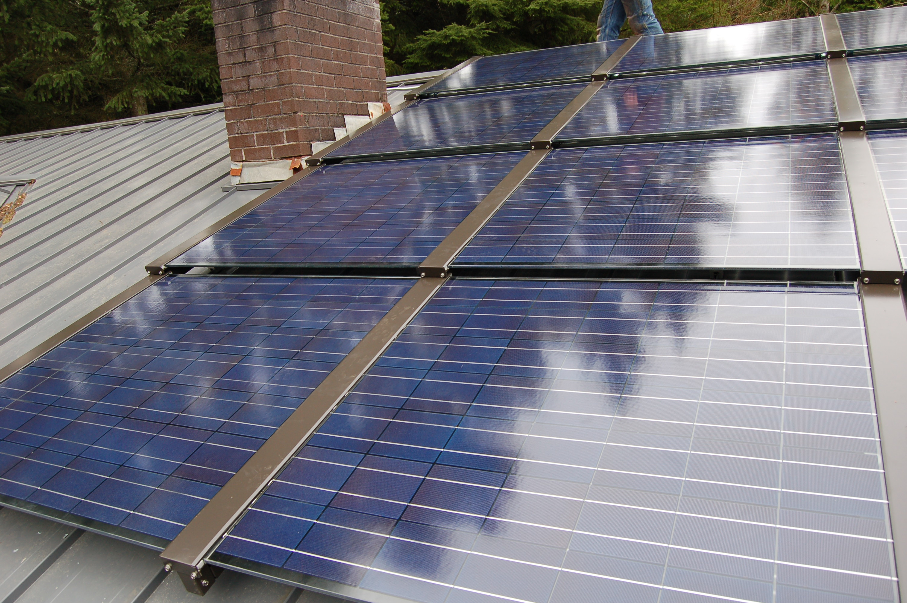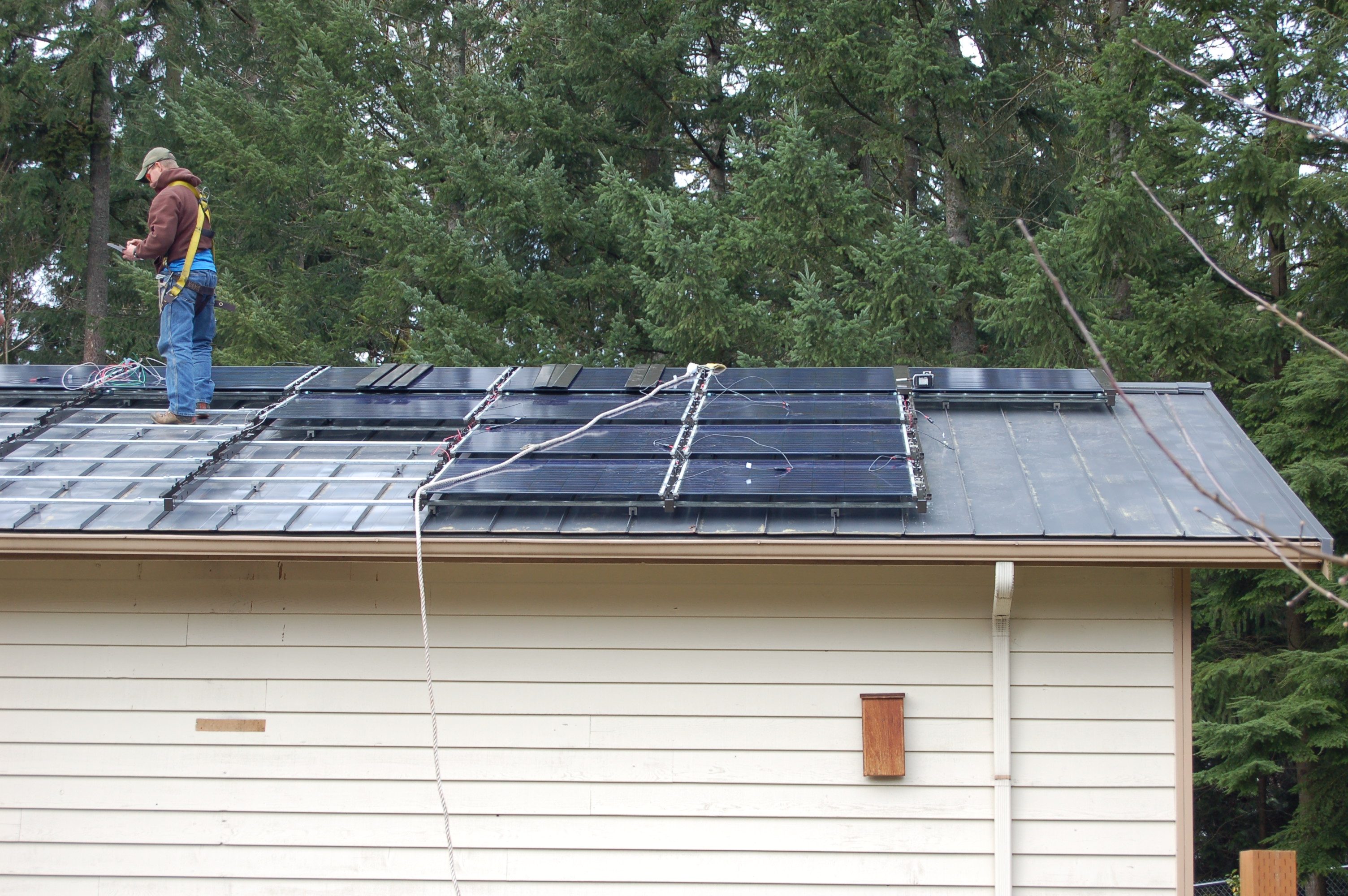 The feasibility having been established, we now needed to decide upon what modules we wished to install. The biggest decision you need to make in Washington State is whether or not you want to use local (WA) produced panels, or ‘foreign’ panels (e.g. produced outside the borders of Washington State). The differences are not trivial: for example, panels from Sanyo have the highest power density (highest efficiency) but you only get an incentive rate (a rebate for energy produced in kiloWatt Hours) of $0.15 / kWH as they are non-locally produced, while panels from Itek Energy or Silicon Energy (SiE) are less efficient (you need more panels to produce the same amount of wattage) but receive the maximum incentive rate of $0.54 / kWH. In addition, the panels from Silicon Energy are the only panels that have survived the DOE accelerated aging tests (80 years and counting) without a failure. After much back and forth, we decided to go with the Silicon Energy panels as they would allow a quicker payoff / break-even than the Sanyo panels, despite the higher initial cost, as well as the fact that we would be supporting a local Washington business and Washington jobs with our purchase. After some juggling of configurations by Will, we decided on a final configuration of a primary array of 33 SiE panels facing SSE running through a large inverter, and a secondary array of 12 panels facing SW running through a smaller inverter.