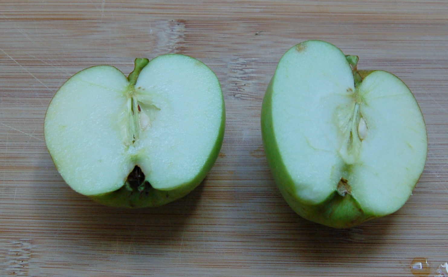 Cutting into the apple shows you that the inside of the apple looks great. Just a few little spots here and there need to be removed.