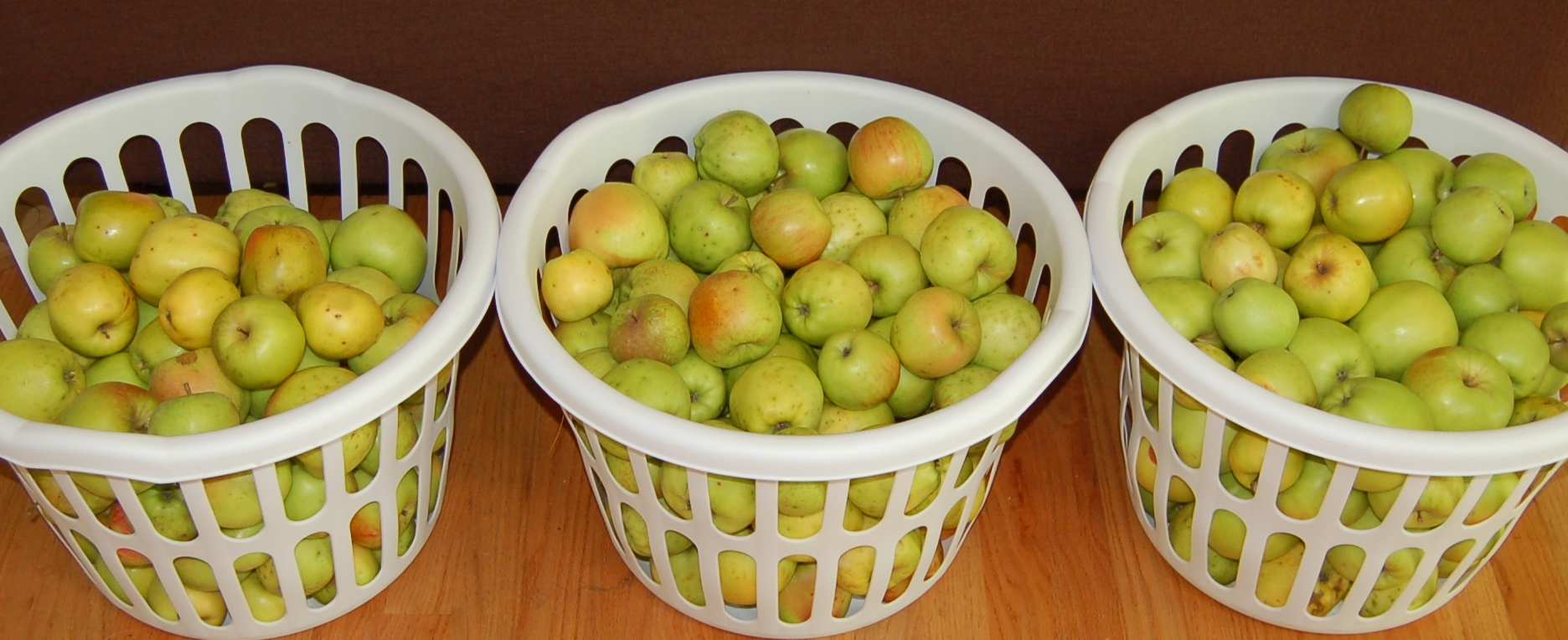 Even though the Chehalis were perfectly beautiful eating apples, we decided to use them in cider because I’ve already made enough applesauce (from the Gravenstein trees) and we have a Honeycrisp and a Winesap that will provide additional eating apples quite shortly.